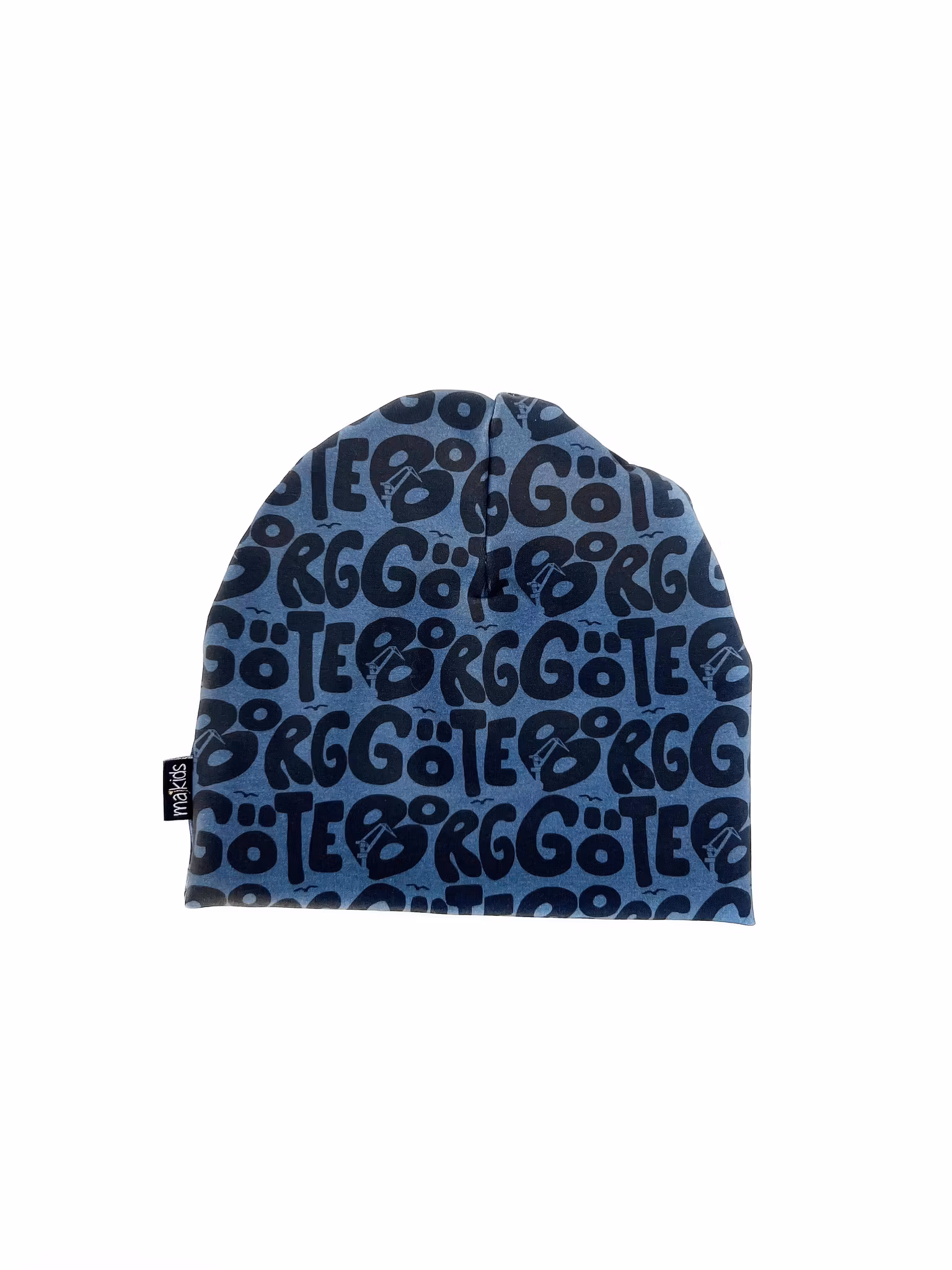 Handsydd trikåmössa i dubbelt tyg med motiv från Göteborg. Ny design 2022!