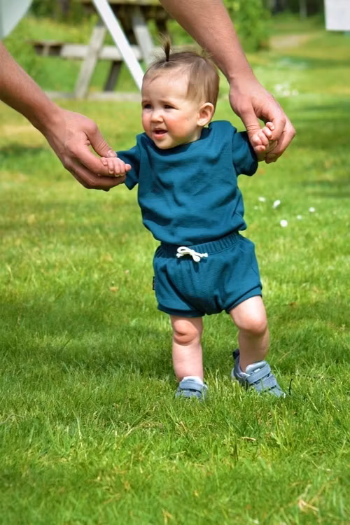 Set bestående av bummies med fuskdragsko och t-shirt i underbar mjuk ribbad trikå.