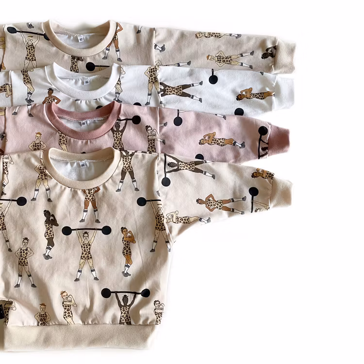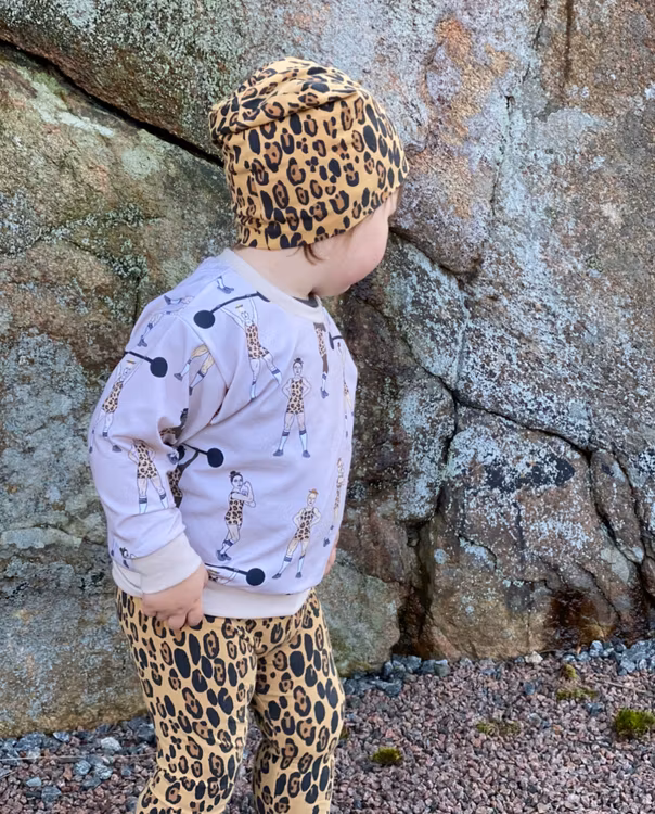 Sweatshirt i oversize-modell med starka tjejer i leoparddräkt i färgen dusty rose.